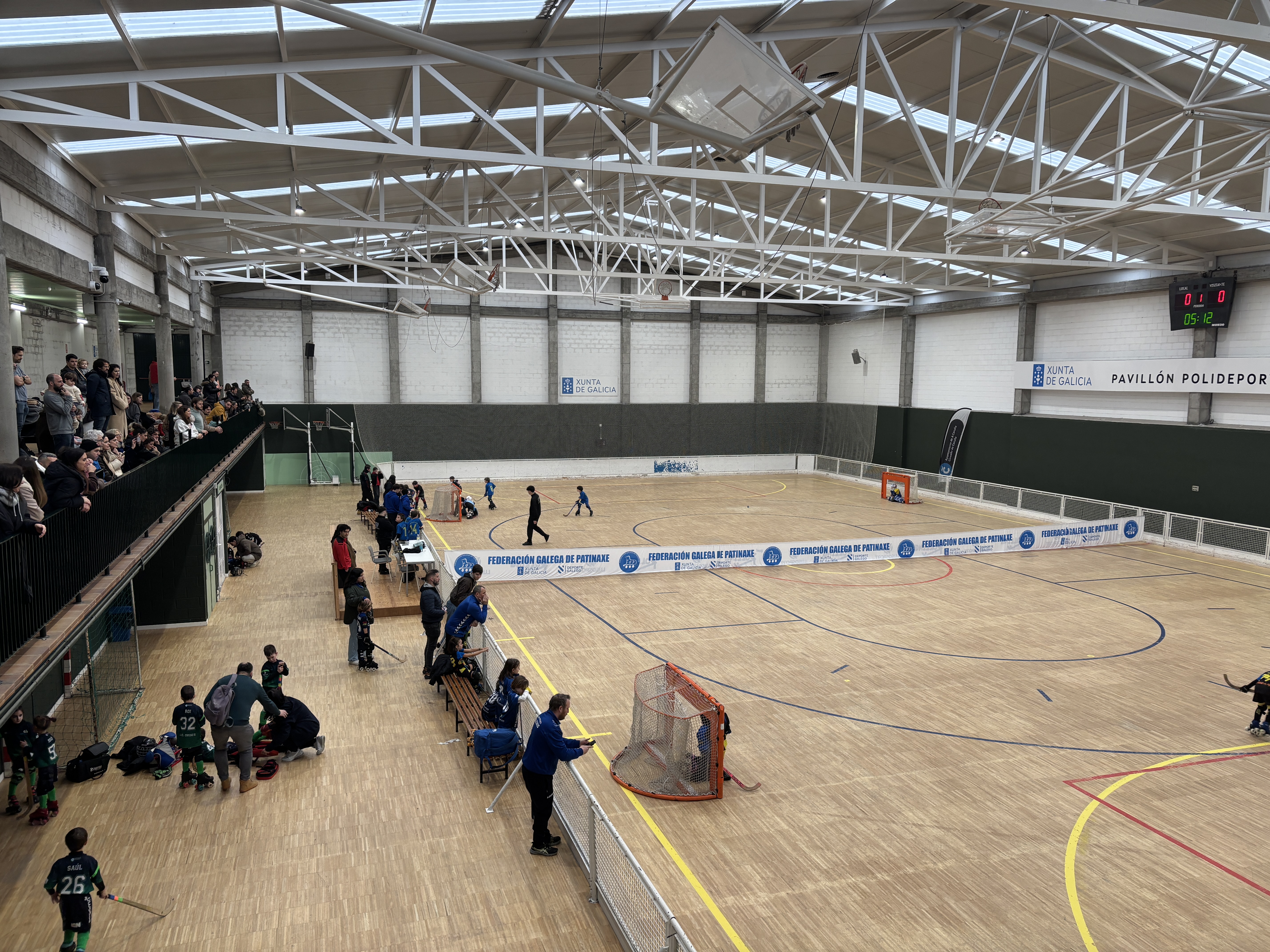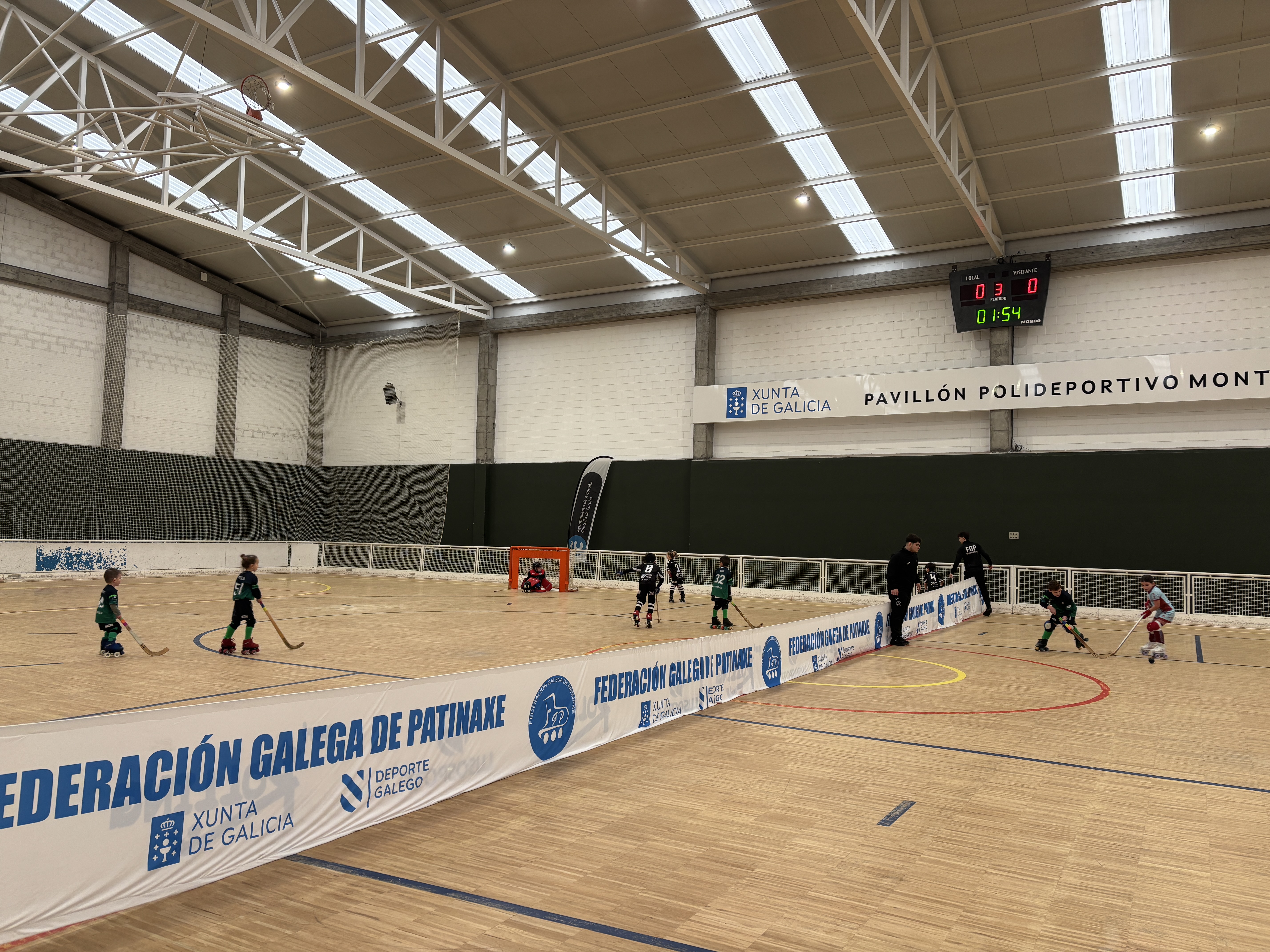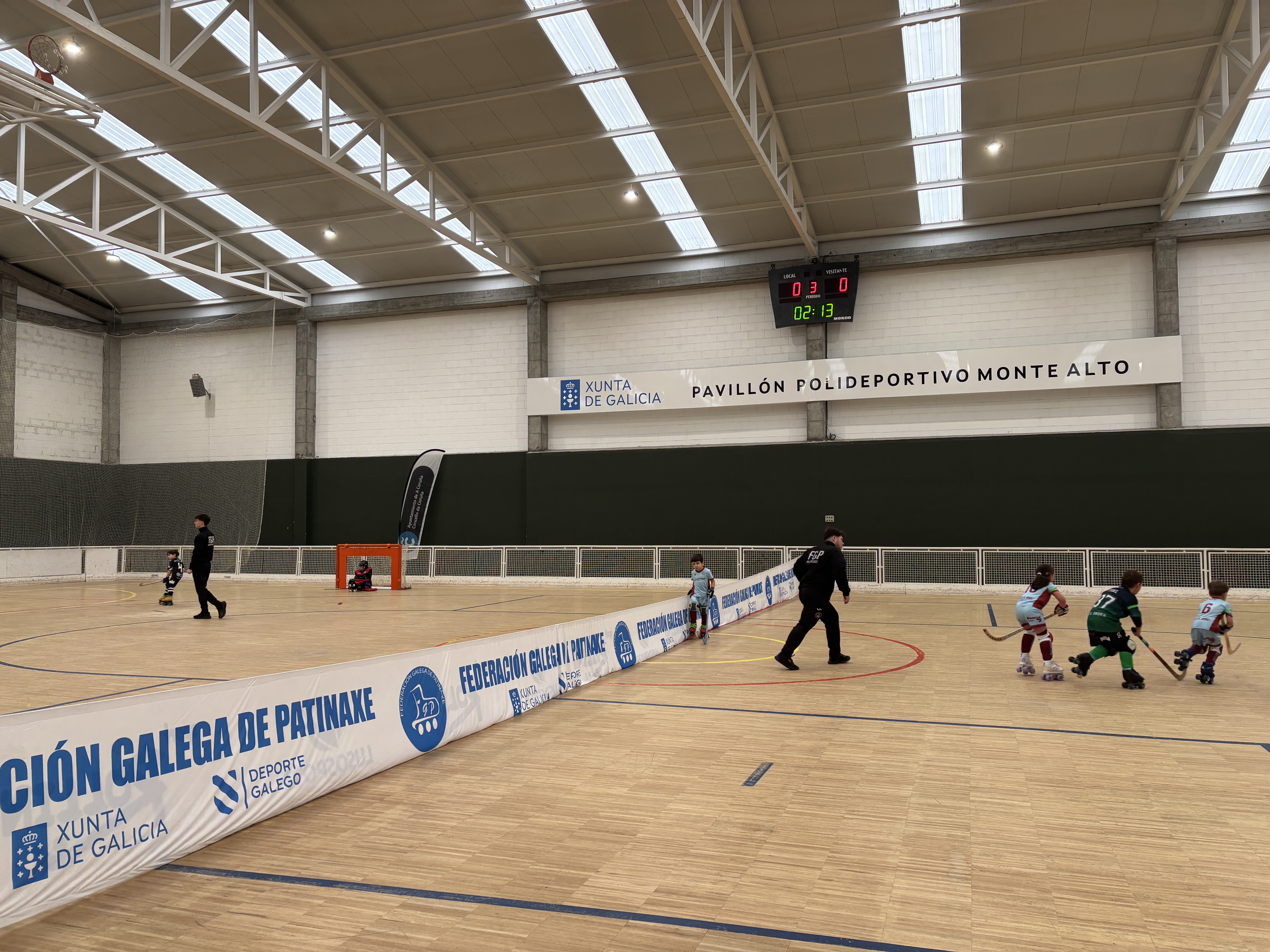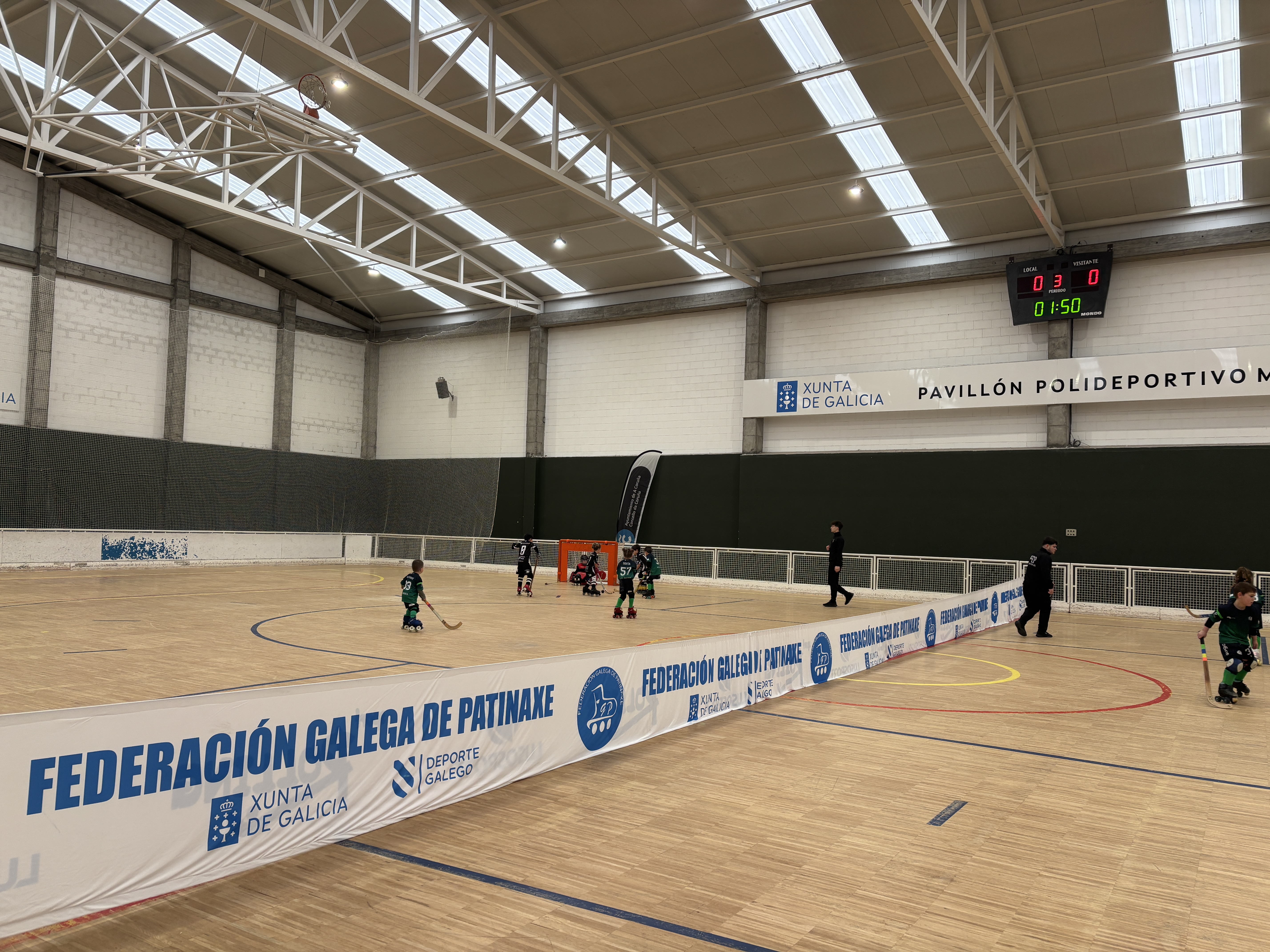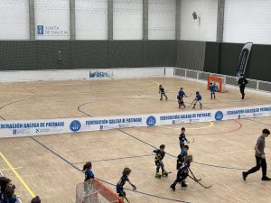 O Pavillón de Monte Alto, en A Coruña, acolleu este sábado la primeira sede da Liga Minihockey para os máis pequenos, organizada pola Federación Galega de Patinaxe.