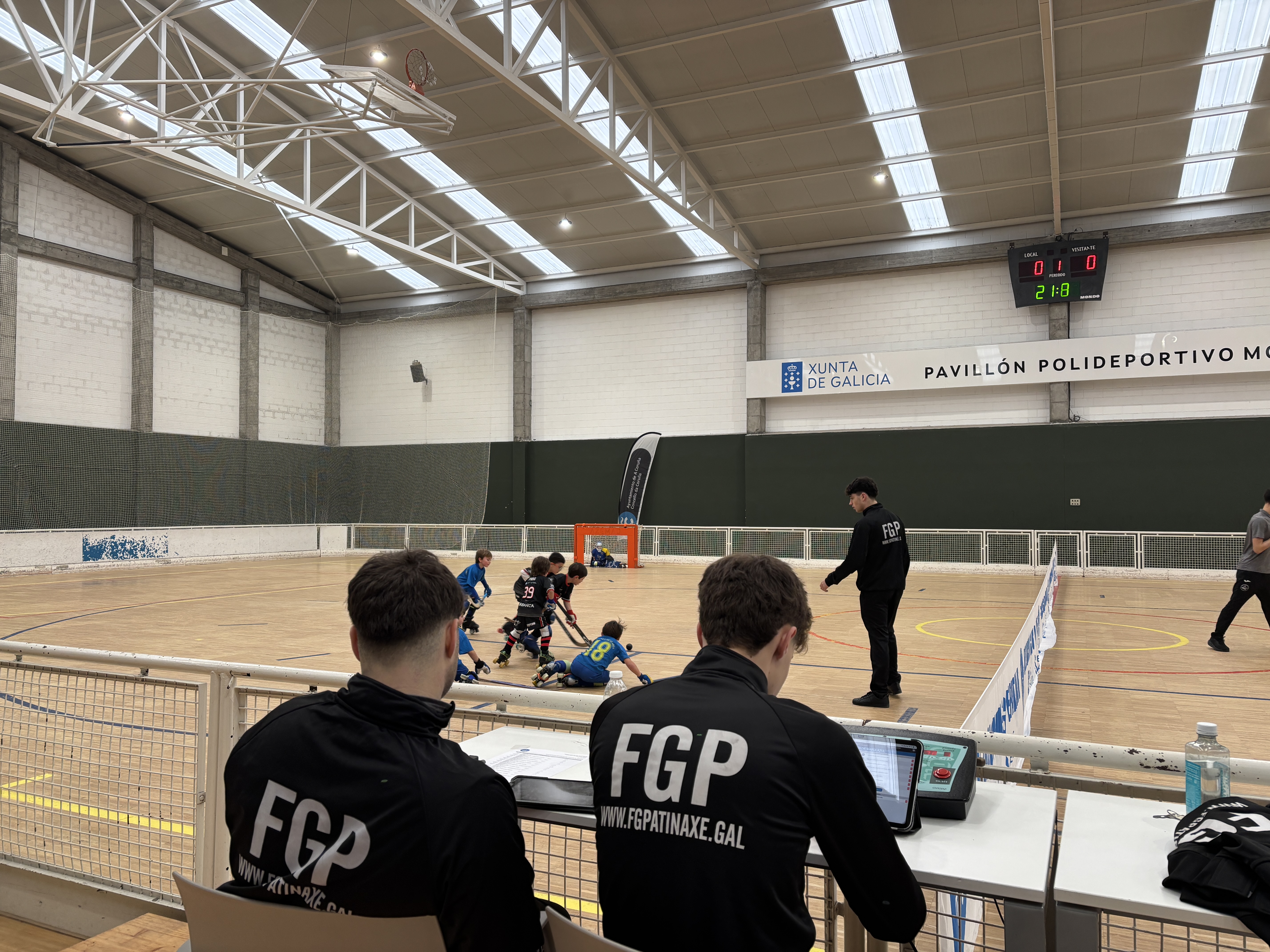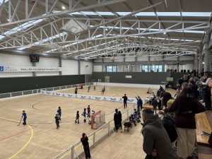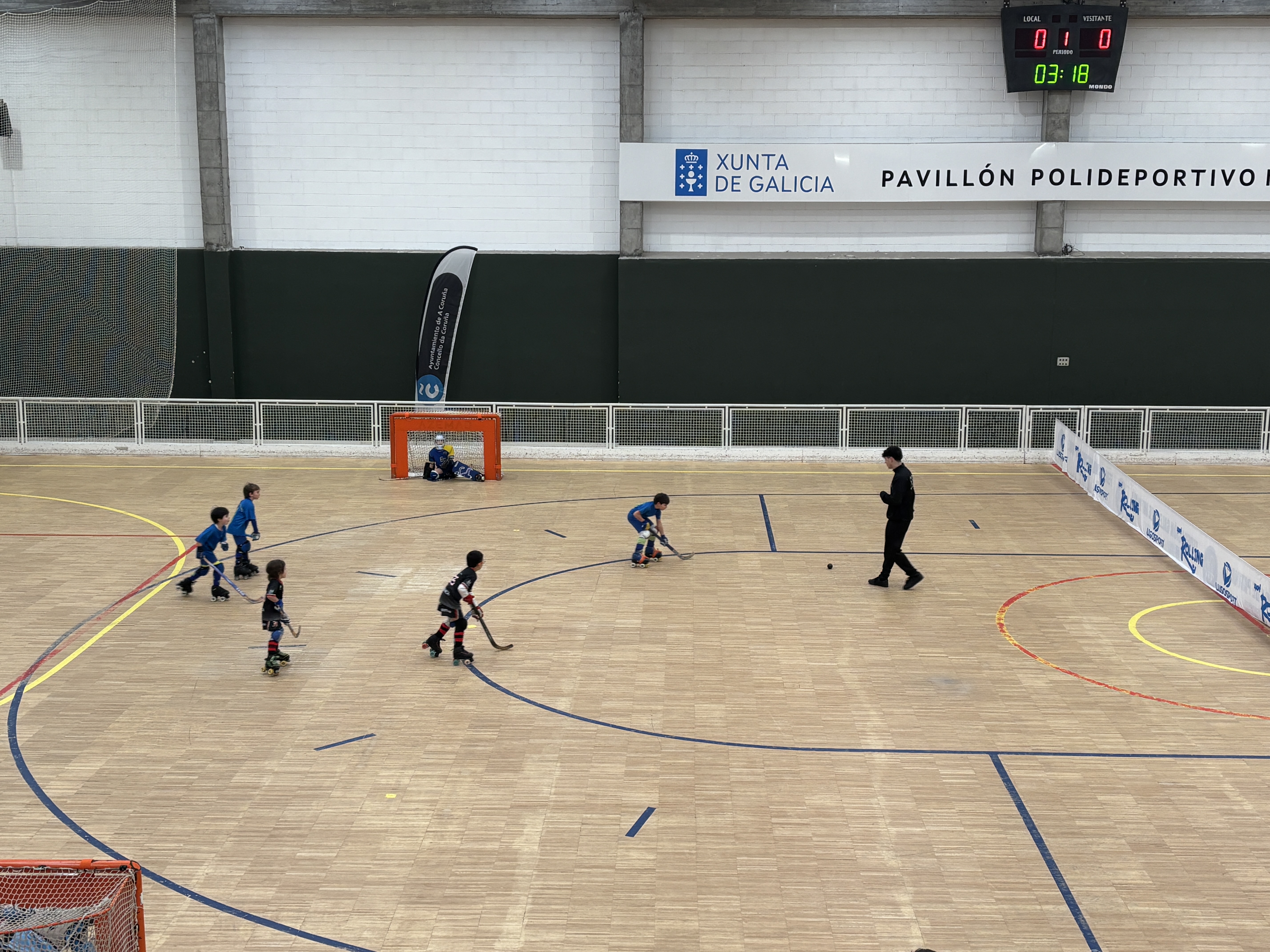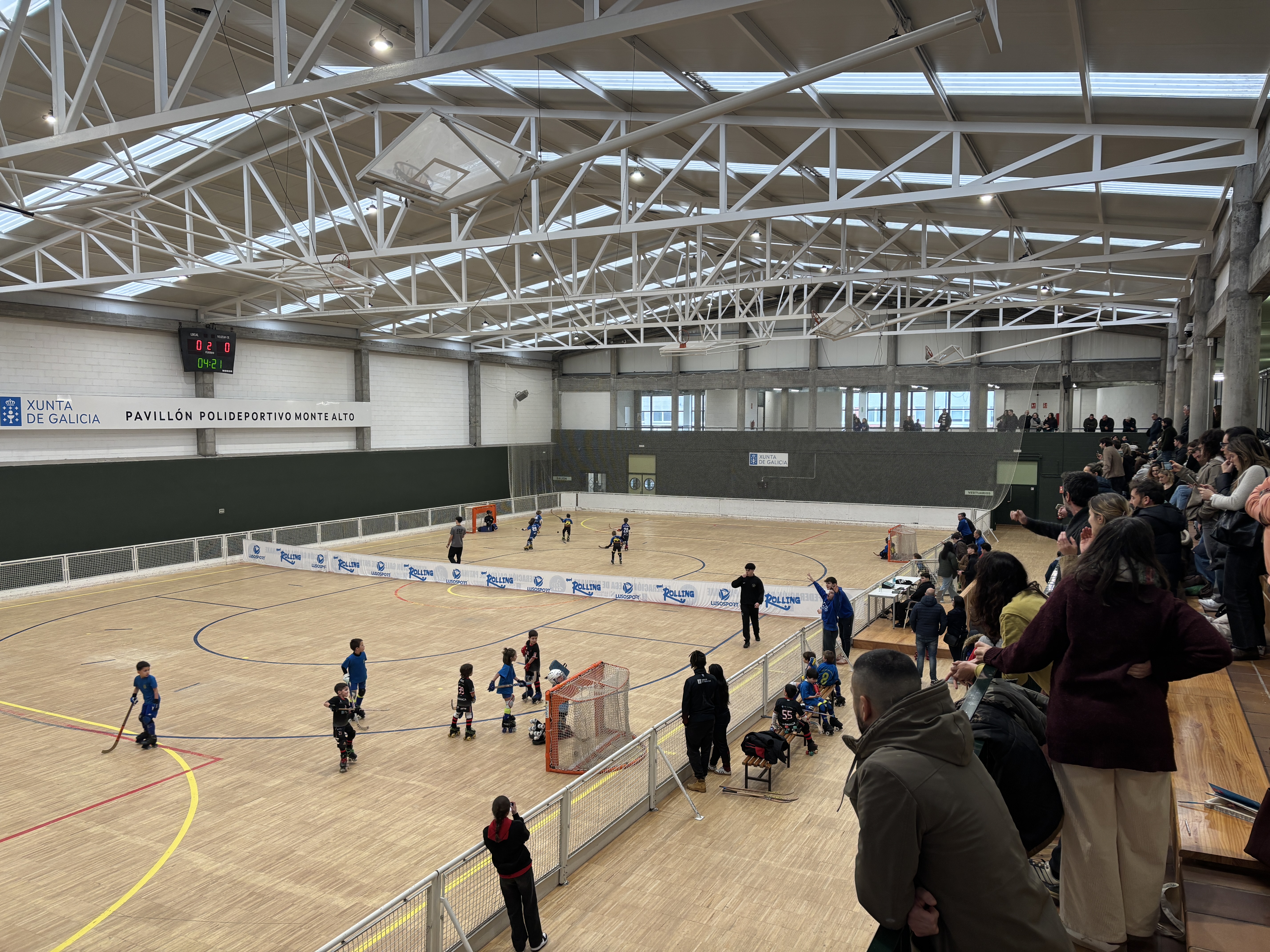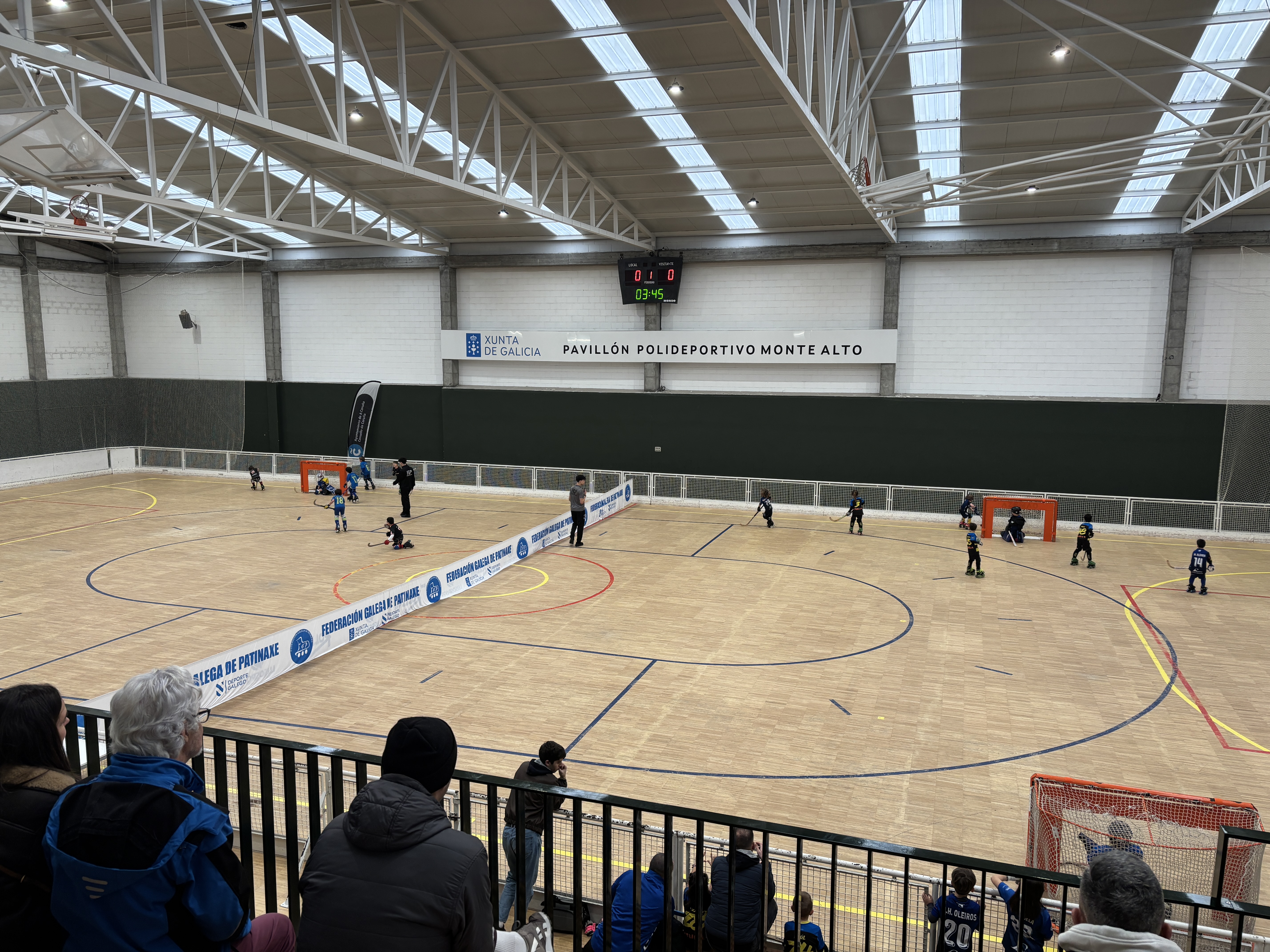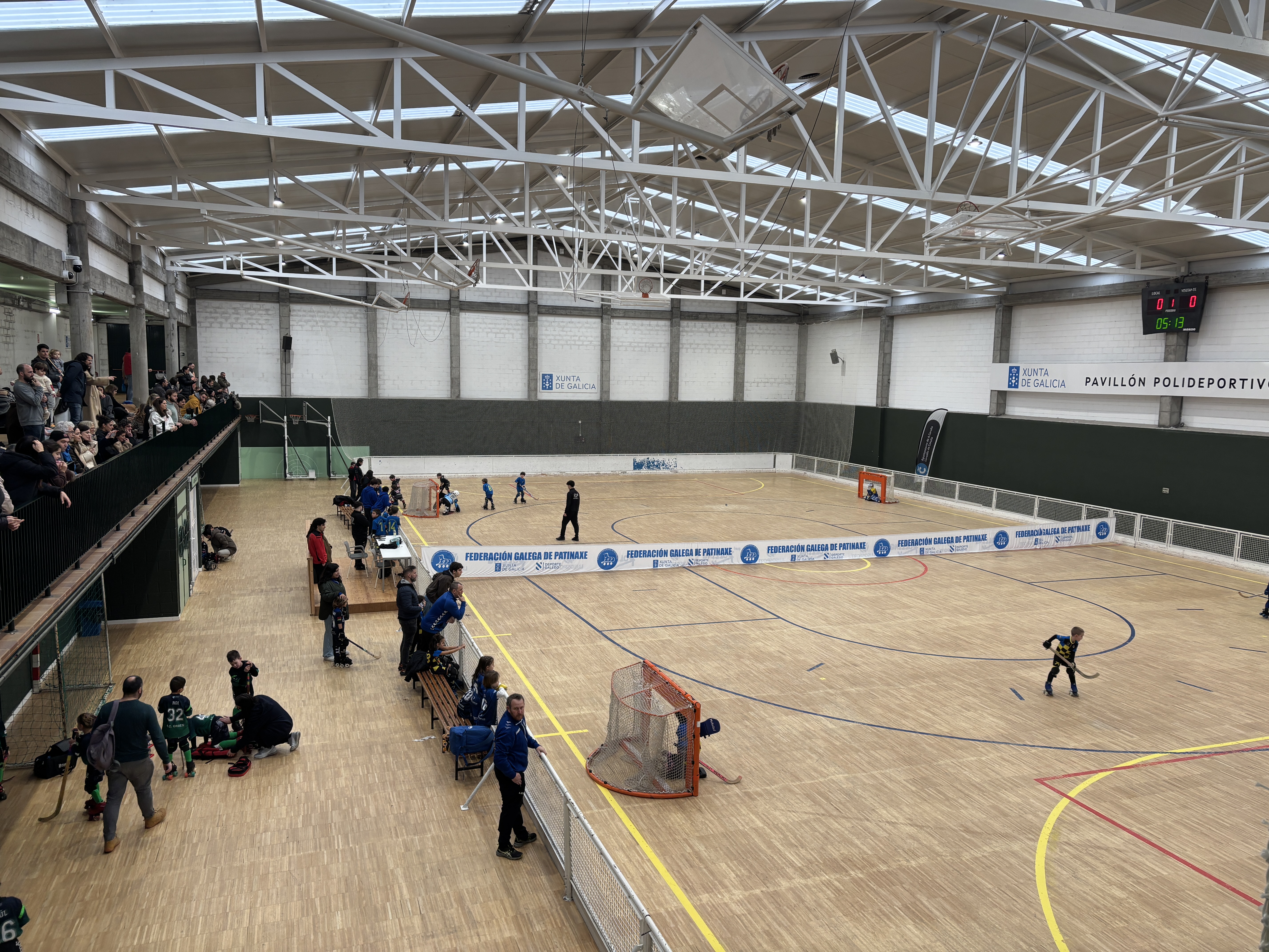 O Pavillón de Monte Alto, en A Coruña, acolleu este sábado la primeira sede da Liga Minihockey para os máis pequenos, organizada pola Federación Galega de Patinaxe.